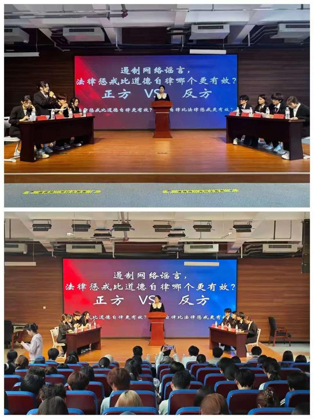 这场辩论赛,是语言与思维的盛宴,更让我们明白:遏制网络谣言,需法律亮剑与道德自律并重。期待同学们以此为契机,理性看待网络信息,共筑清朗网络家园。