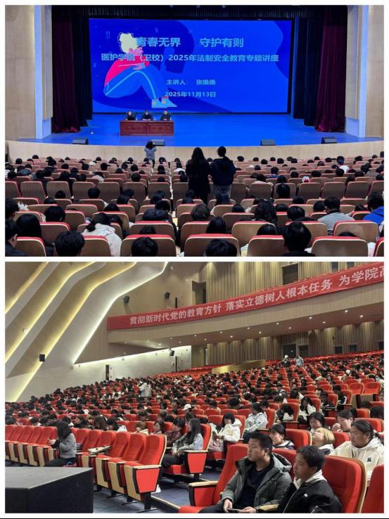 为增强医护学子自我保护意识,11月13日下午,医护学院面向大、中专(卫校)共计900余名在校生在学术报告厅开展了以“青春无界,守护有责”为主题的法制安全教育。本次活动邀请了河南广林律师事务所张焕焕律师担任主讲,陕州区司法局公共法律服务管理股对本次讲座给予了大力支持,李献廷股长及梁艳艳、高川2位主任莅临指导。讲座由我院学工办主任闫慧峰主持。