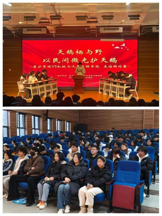 为引导学生关注生态议题、提升思辨能力与团队协作意识,12月18日下午,医护学院和机械与汽车工程学院在七号楼71324报告厅联合举办友谊辩论赛。本次辩论围绕“民间公益力量参与白天鹅保护是利大于弊还是弊大于利”展开。