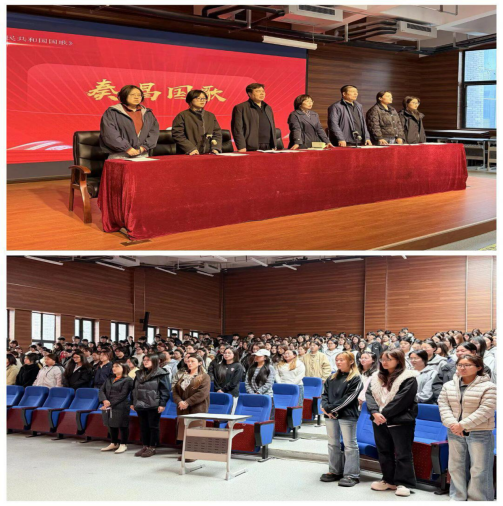 仪式伊始,全体起立奏唱国歌,现场氛围庄重肃穆。学工办主任闫慧峰首先作动员讲话并解读活动方案。部署了新学期学生干部工作,详细介绍了宿舍文化建设月、文明养成教育活动的整体活动安排、评比标准与时间节点。宿管部负责老师李少康围绕宿舍文化建设月具体实施细则进行细致讲解,明确宿舍内务规范、文化创建要求,同时寄语全体学子主动参与宿舍建设,携手打造整洁有序、温馨友爱的宿舍环境。随后,各部门负责老师依次总结上学期工作,剖析不足并提出新学期改进方向,为学生干部履职提供指导。