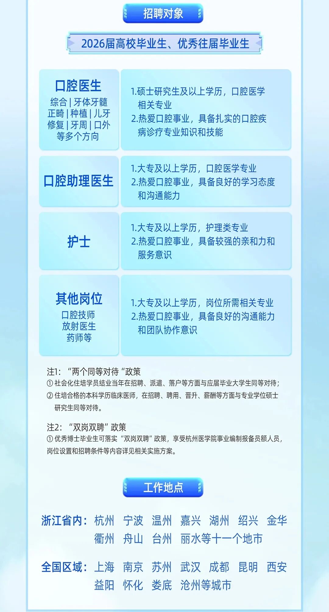 杭州口腔医院集团/宁波口腔医院集团2026届校园招聘公告