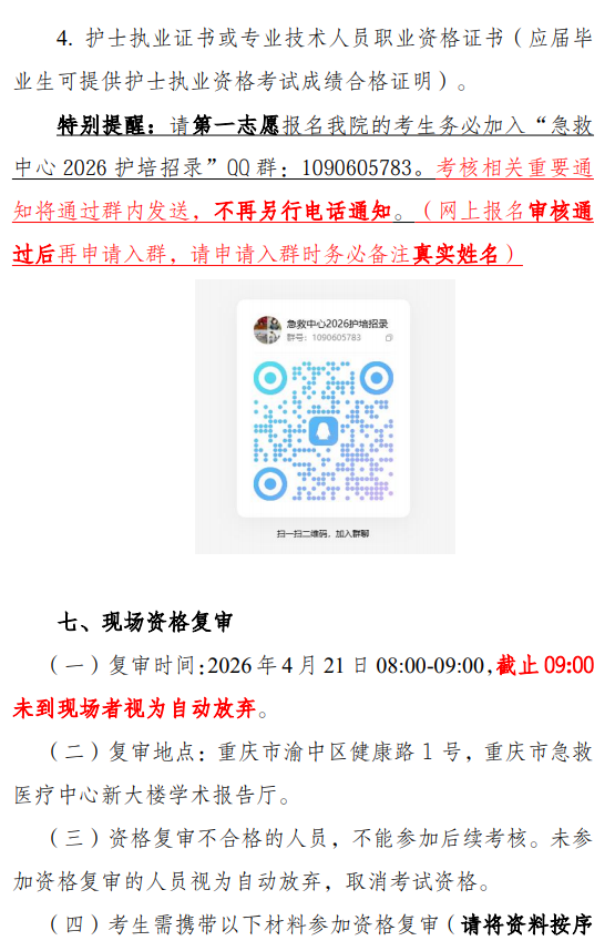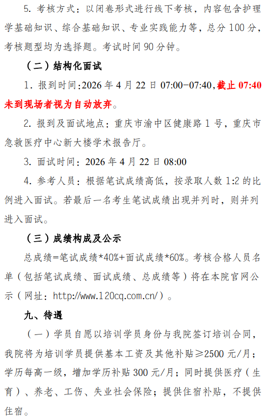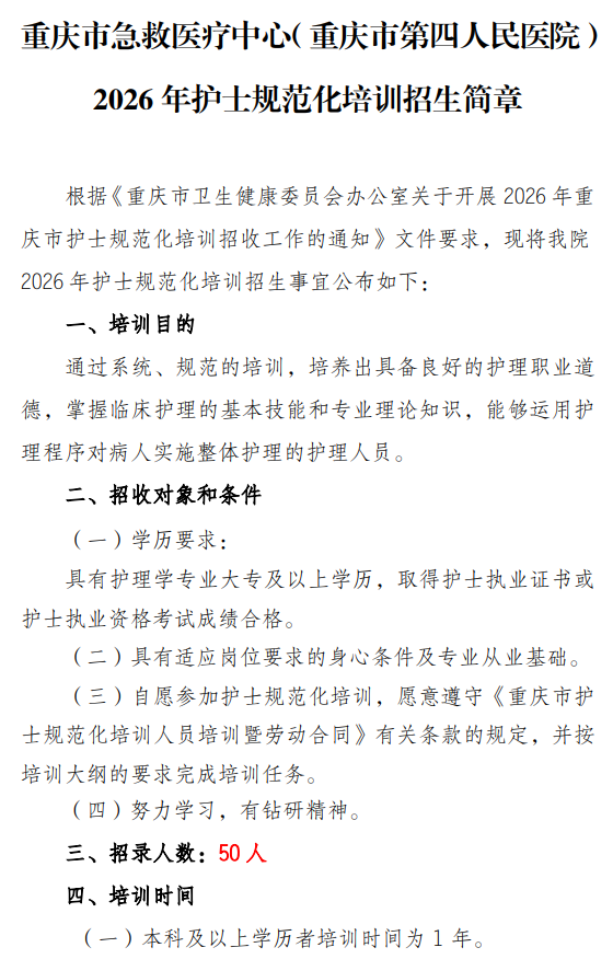 2026年重庆市急救医疗中心规培护士招生简章(50名)